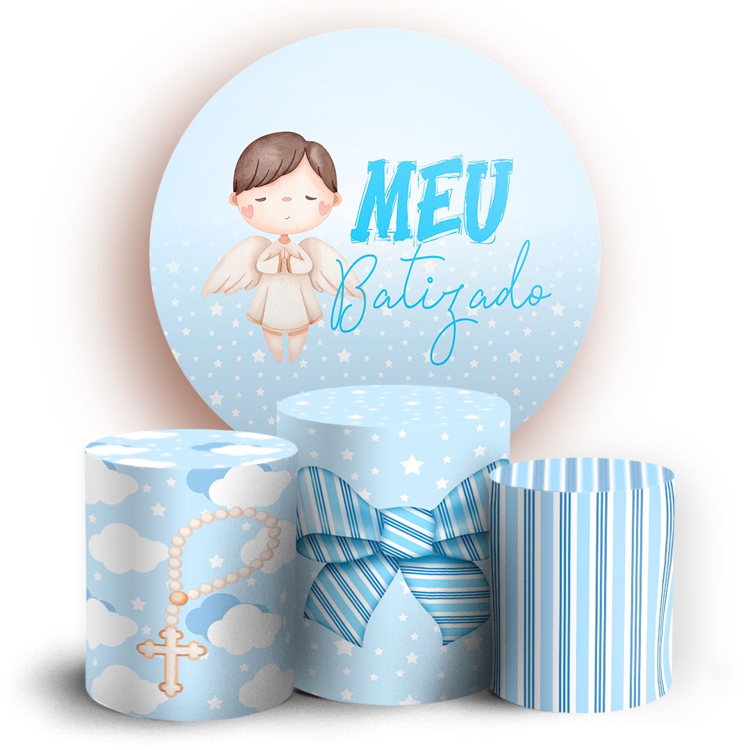 KIT Redondo e Trio - Batizado Azul - Sublimado 3D