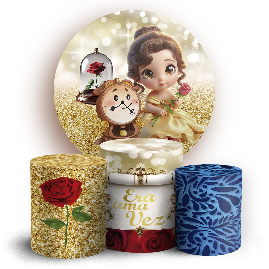 O kit Painel Redondo + Trio de capas para cilindros sublimados veste fácil, possuem acabamento overloque e elásticos nas bordas para facilitar a montagem da decoração