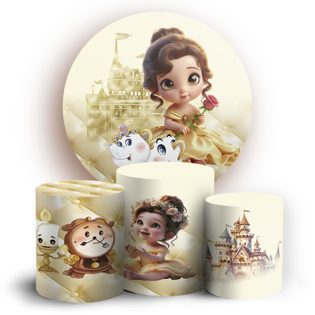 O kit Painel Redondo + Trio de capas para cilindros sublimados veste fácil, possuem acabamento overloque e elásticos nas bordas para facilitar a montagem da decoração