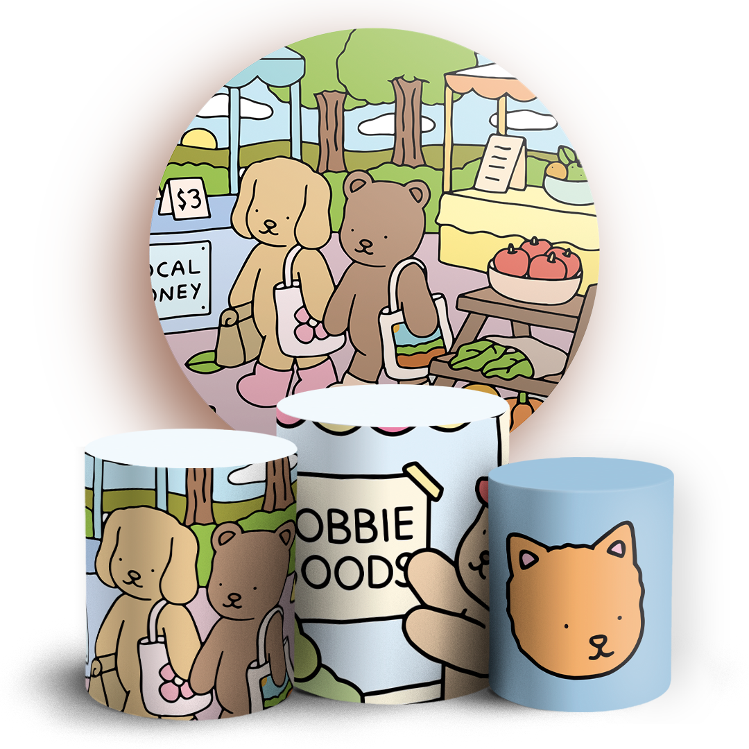 O kit Painel Redondo + Trio de capas para cilindros sublimados veste fácil, possuem acabamento overloque e elásticos nas bordas para facilitar a montagem da decoração