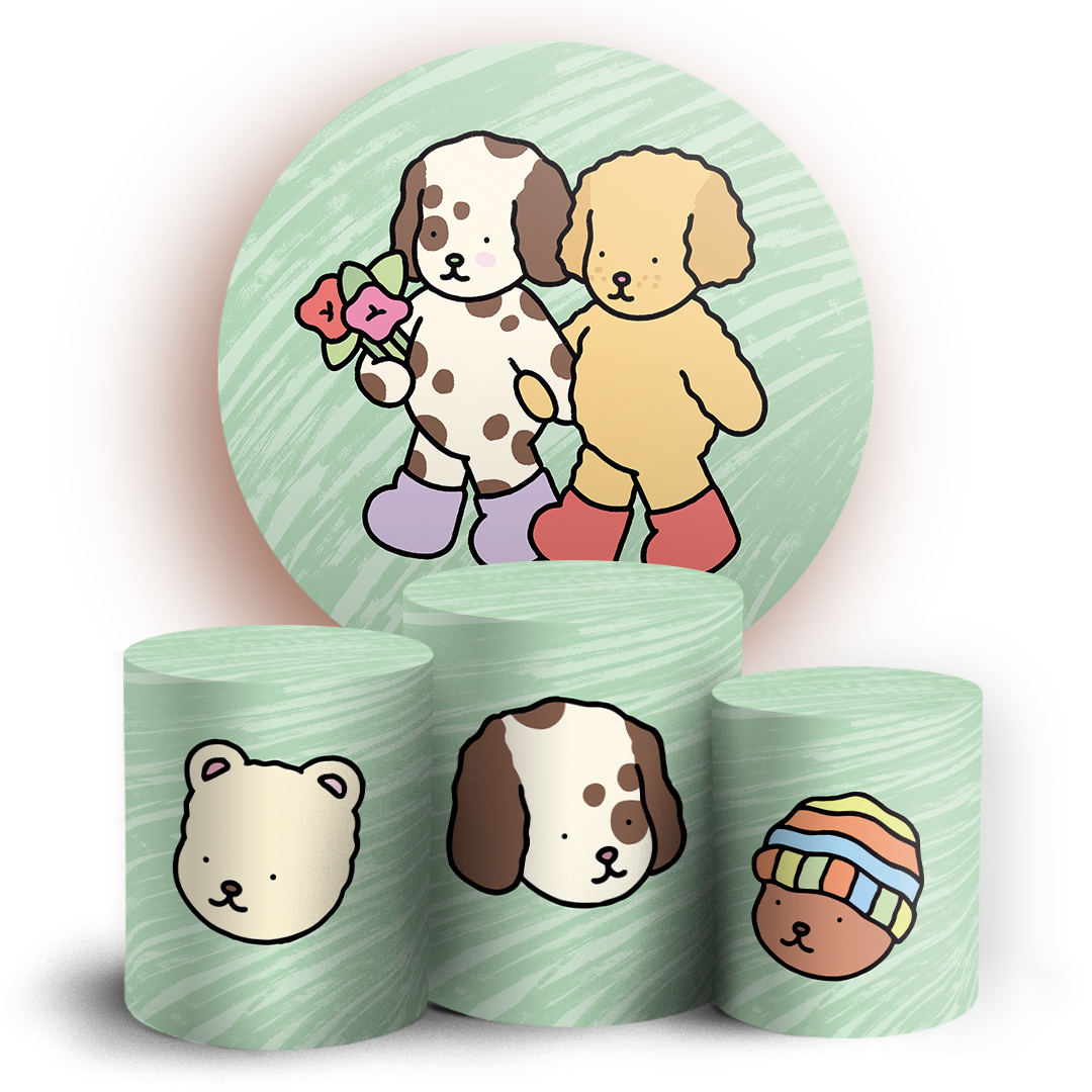 O kit Painel Redondo + Trio de capas para cilindros sublimados veste fácil, possuem acabamento overloque e elásticos nas bordas para facilitar a montagem da decoração