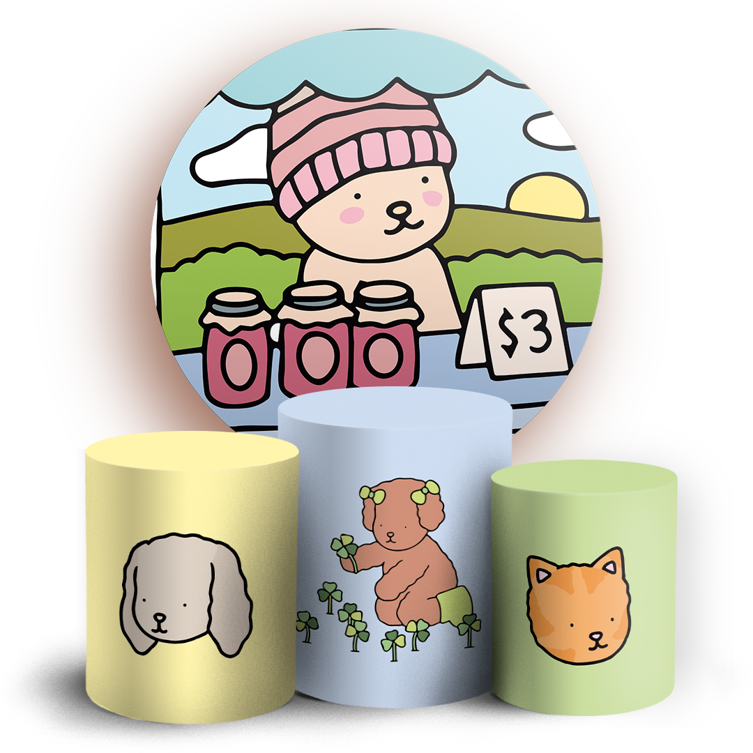 O kit Painel Redondo + Trio de capas para cilindros sublimados veste fácil, possuem acabamento overloque e elásticos nas bordas para facilitar a montagem da decoração