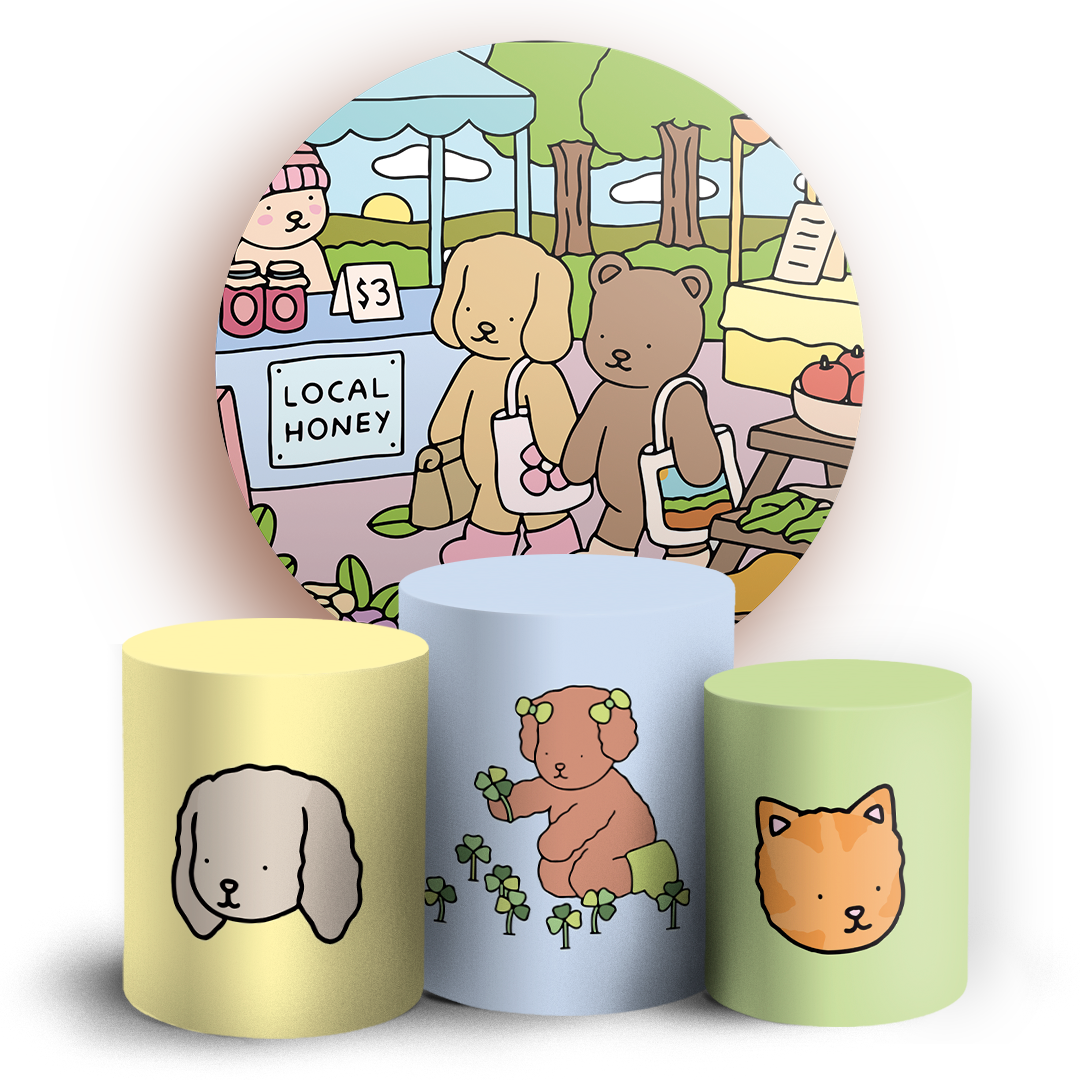 O kit Painel Redondo + Trio de capas para cilindros sublimados veste fácil, possuem acabamento overloque e elásticos nas bordas para facilitar a montagem da decoração