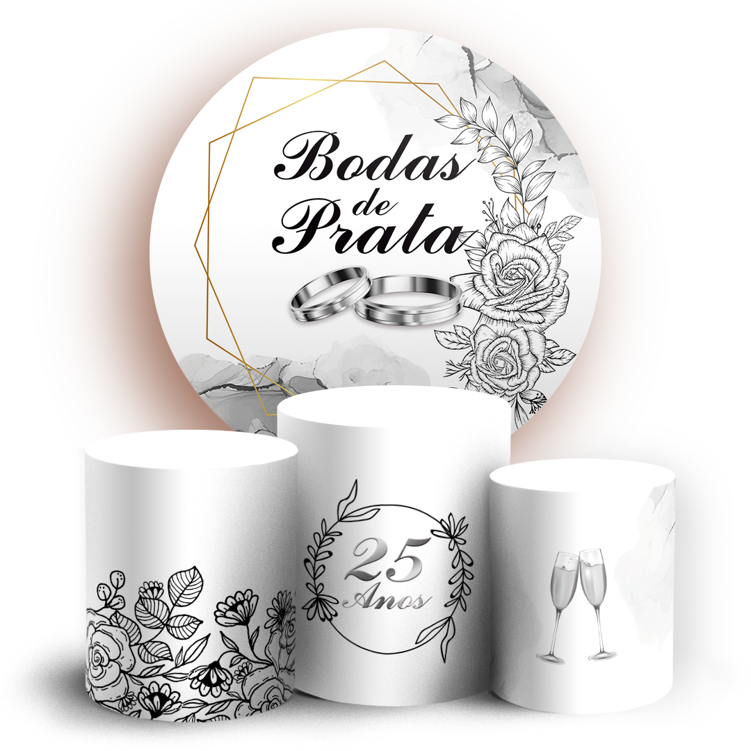 KIT Redondo e Trio - Bodas de Prata - Sublimado 3D