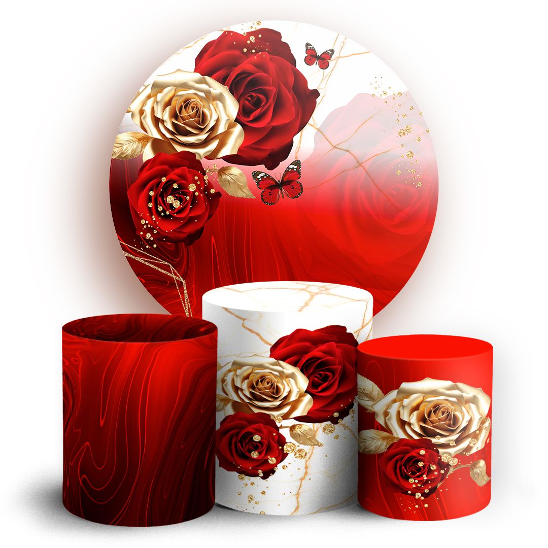 O kit Painel Redondo + Trio de capas para cilindros sublimados veste fácil, possuem acabamento overloque e elásticos nas bordas para facilitar a montagem da decoração