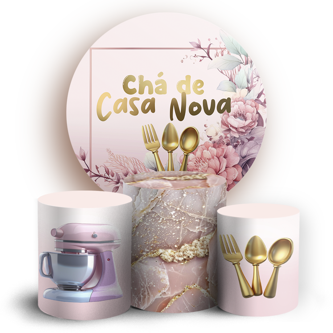 KIT Redondo e Trio - Chá De Casa Nova - Sublimado 3D