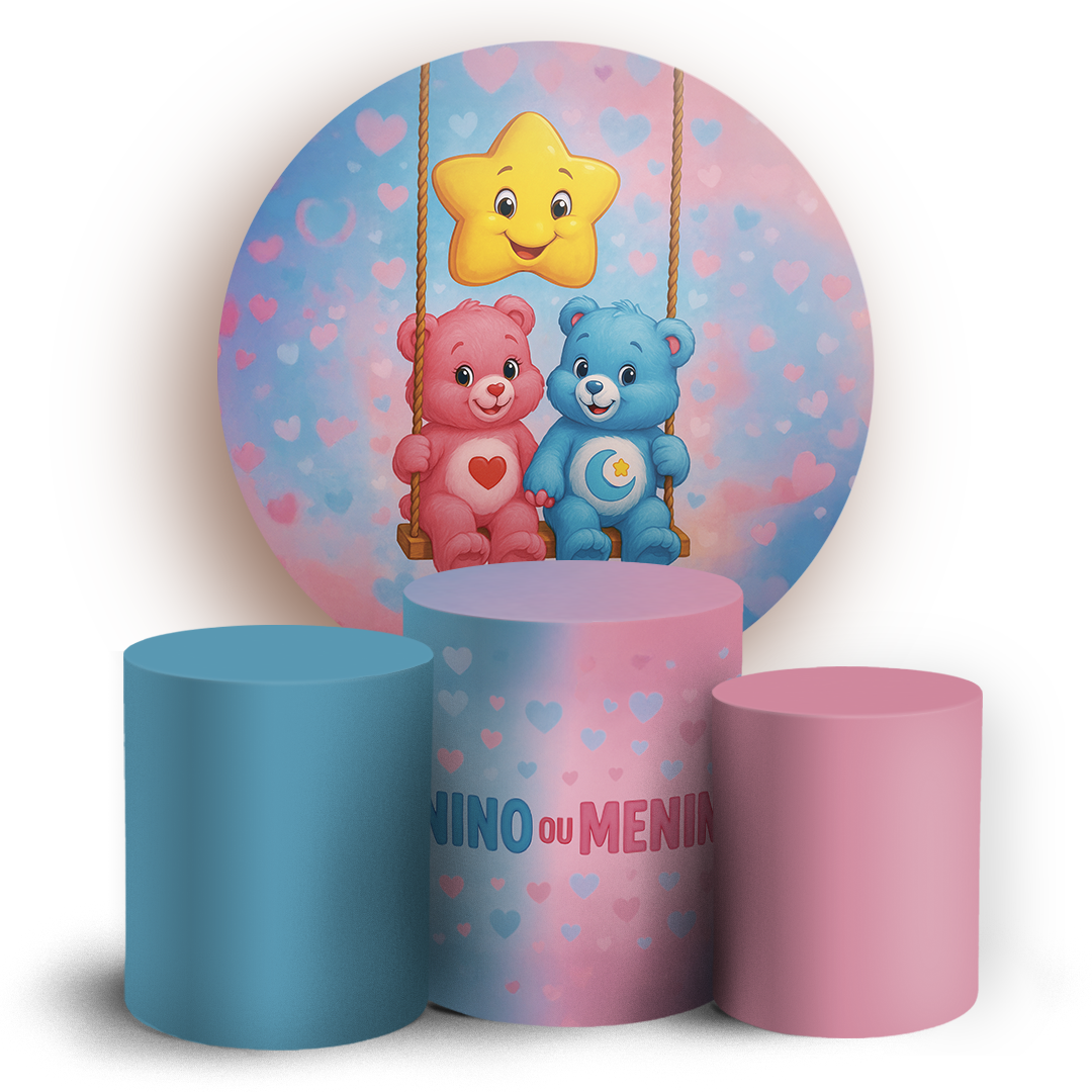 KIT Redondo e Trio - Chá De Revelação Ursinhos - Sublimado 3D
