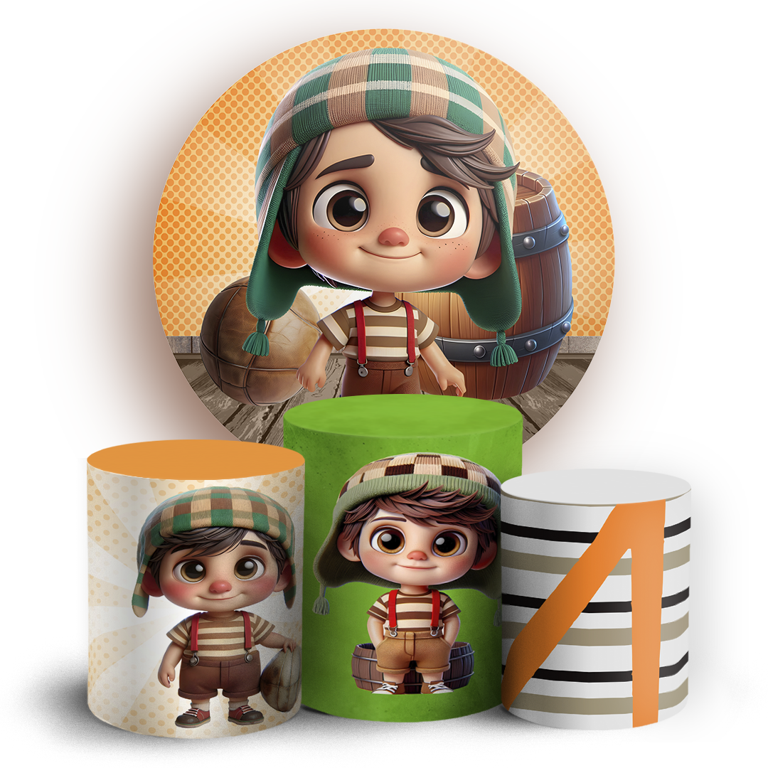 O kit Painel Redondo + Trio de capas para cilindros sublimados veste fácil, possuem acabamento overloque e elásticos nas bordas para facilitar a montagem da decoração