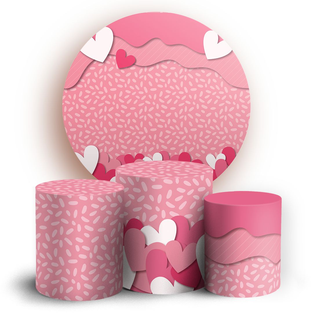 O kit Painel Redondo + Trio de capas para cilindros sublimados veste fácil, possuem acabamento overloque e elásticos nas bordas para facilitar a montagem da decoração