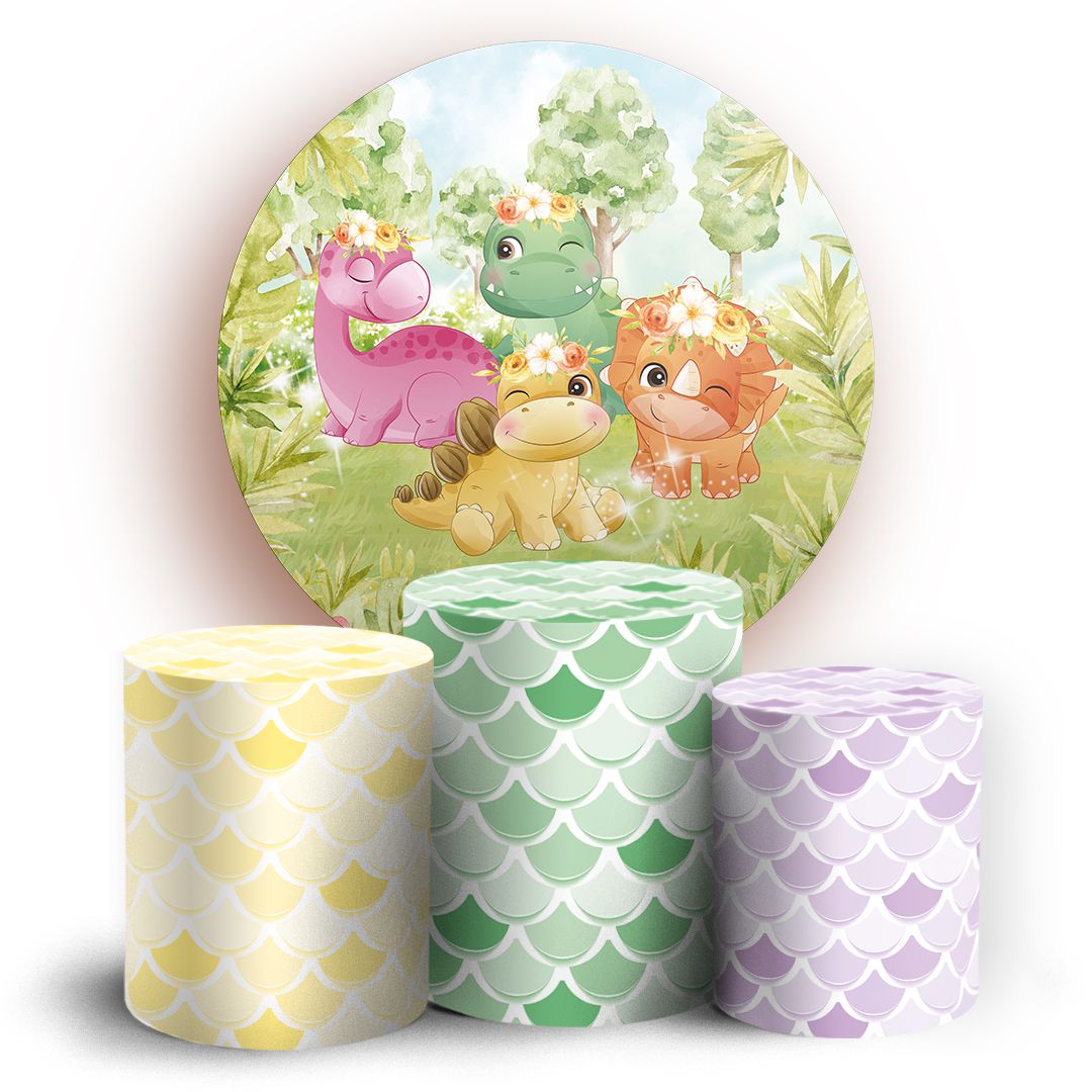 KIT Redondo e Trio - Dinossauro Escama Revelacao - Sublimado 3D