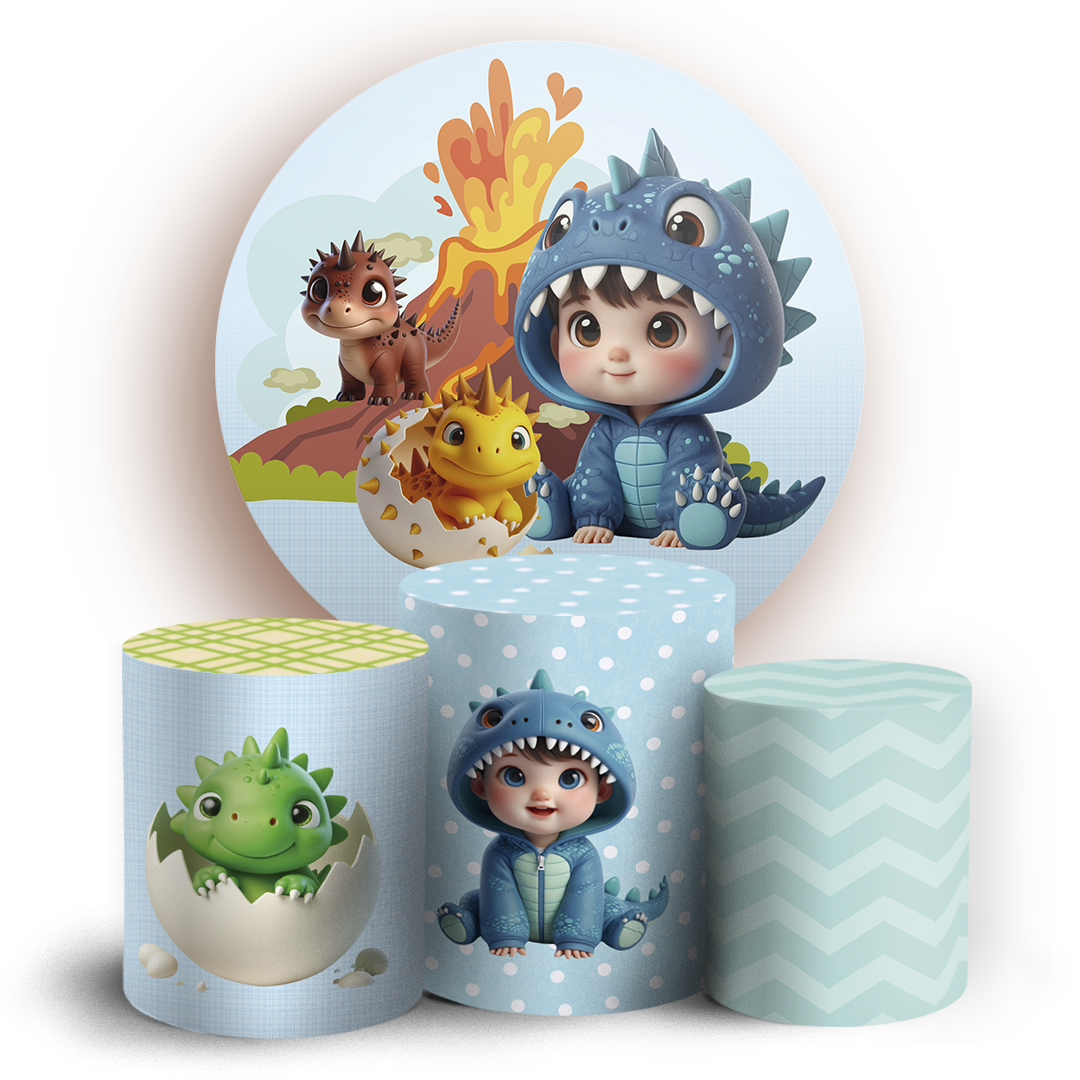 KIT Redondo e Trio - Dinossauro Menino - Sublimado 3D