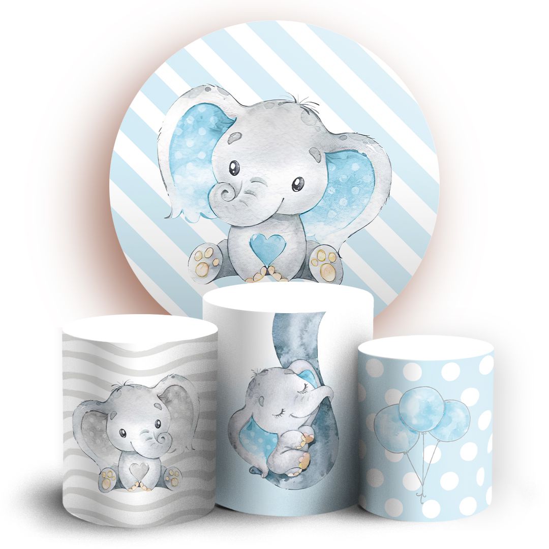 KIT Redondo e Trio - Elefantinhos Azul - Sublimado 3D