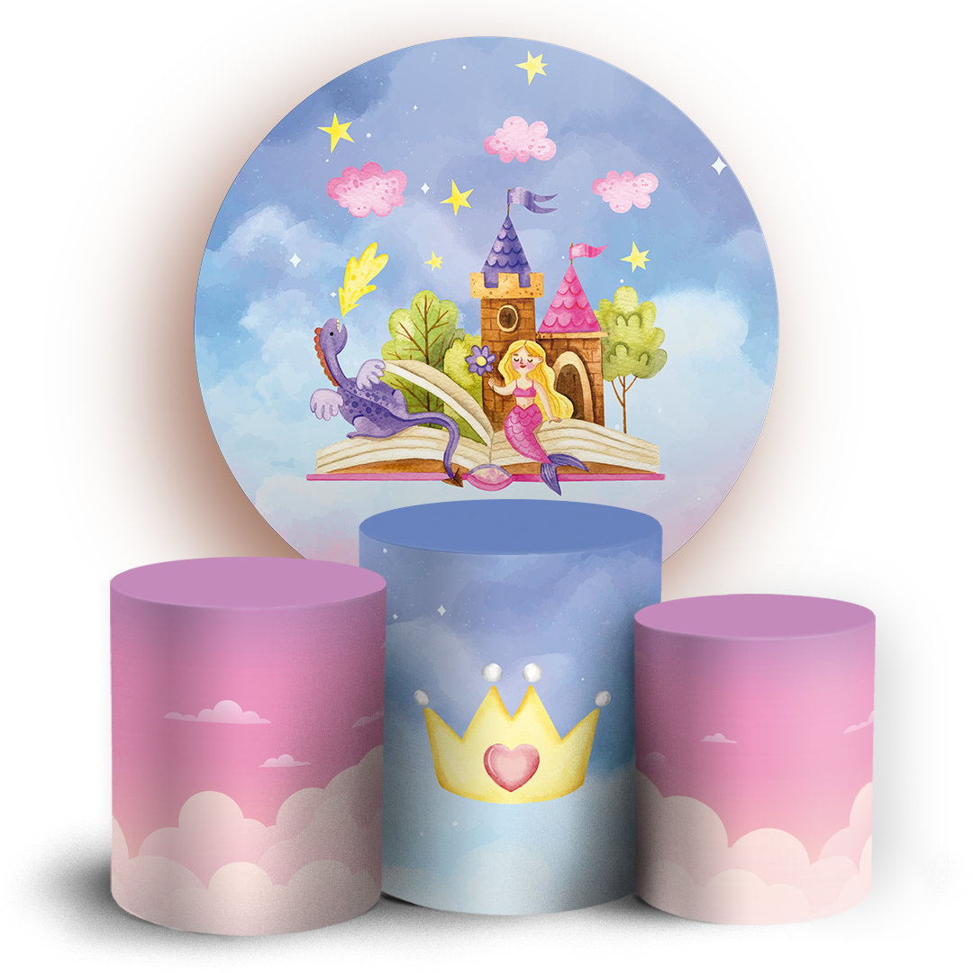 O kit Painel Redondo + Trio de capas para cilindros sublimados veste fácil, possuem acabamento overloque e elásticos nas bordas para facilitar a montagem da decoração