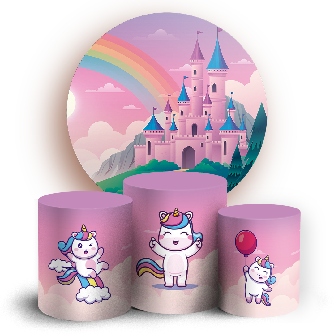 O kit Painel Redondo + Trio de capas para cilindros sublimados veste fácil, possuem acabamento overloque e elásticos nas bordas para facilitar a montagem da decoração