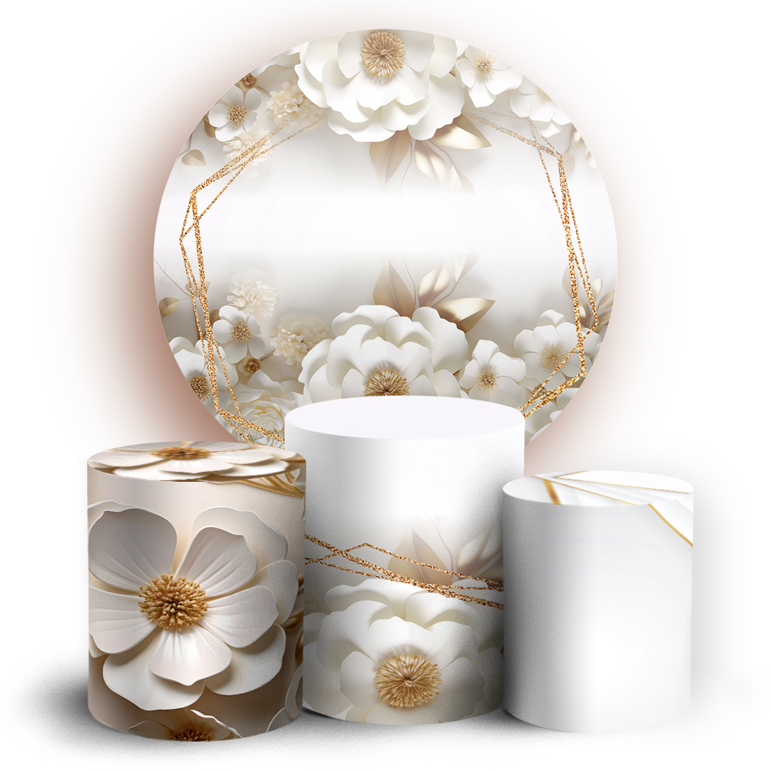 O kit Painel Redondo + Trio de capas para cilindros sublimados veste fácil, possuem acabamento overloque e elásticos nas bordas para facilitar a montagem da decoração
