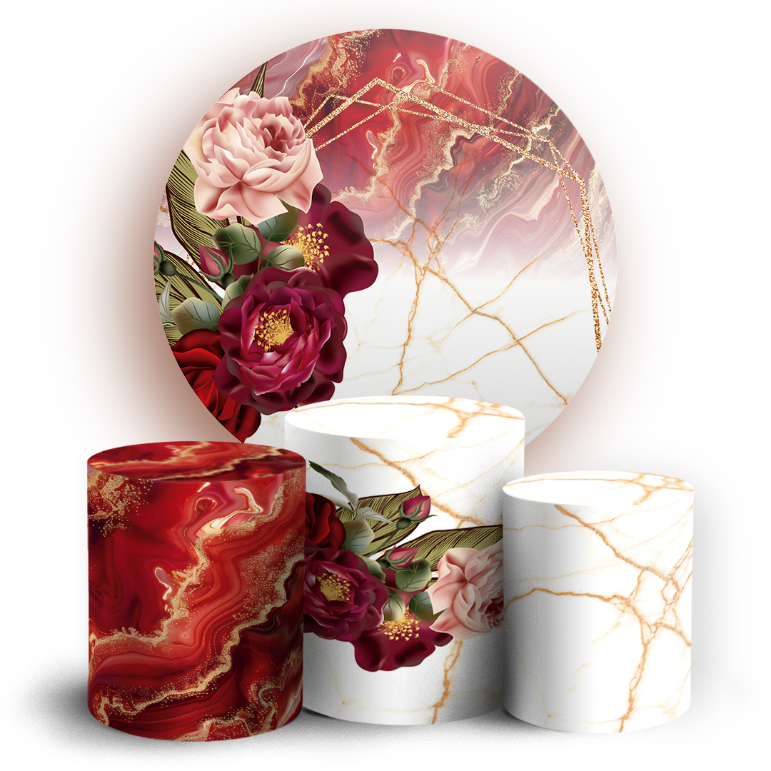 O kit Painel Redondo + Trio de capas para cilindros sublimados veste fácil, possuem acabamento overloque e elásticos nas bordas para facilitar a montagem da decoração