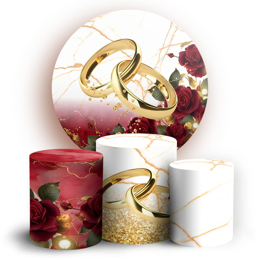 O kit Painel Redondo + Trio de capas para cilindros sublimados veste fácil, possuem acabamento overloque e elásticos nas bordas para facilitar a montagem da decoração