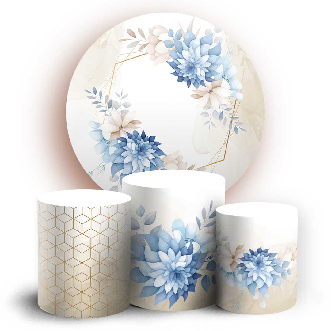 O kit Painel Redondo + Trio de capas para cilindros sublimados veste fácil, possuem acabamento overloque e elásticos nas bordas para facilitar a montagem da decoração