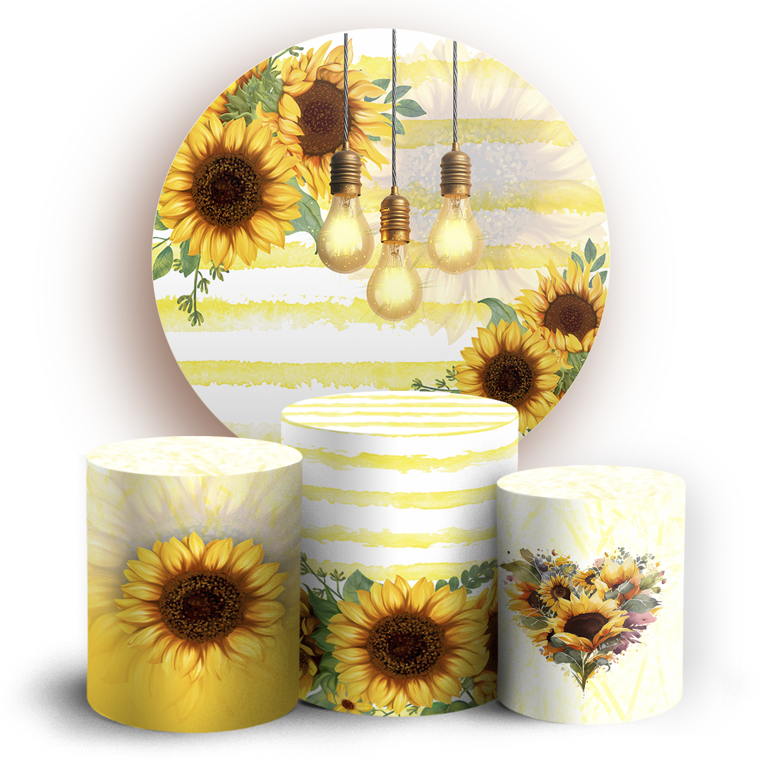 O kit Painel Redondo + Trio de capas para cilindros sublimados veste fácil, possuem acabamento overloque e elásticos nas bordas para facilitar a montagem da decoração