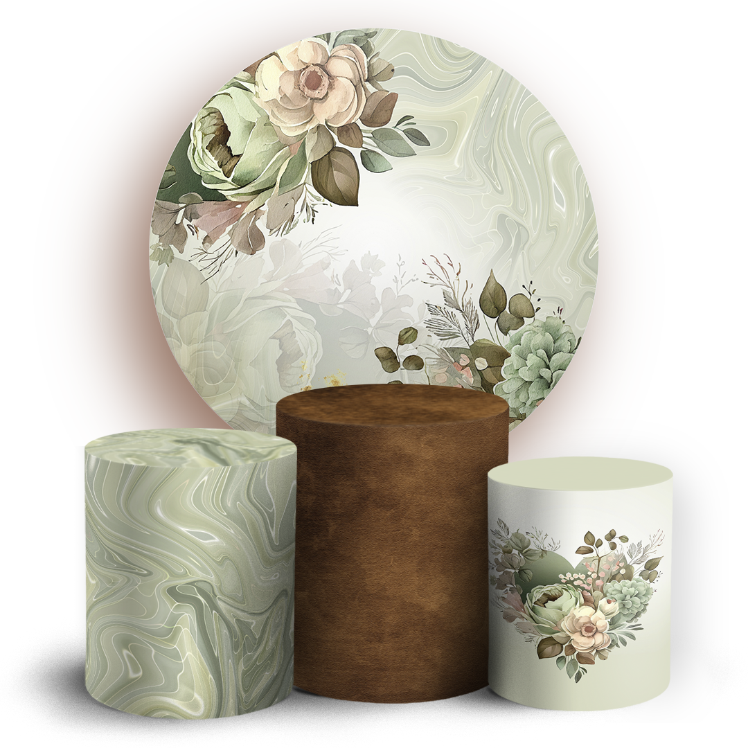 O kit Painel Redondo + Trio de capas para cilindros sublimados veste fácil, possuem acabamento overloque e elásticos nas bordas para facilitar a montagem da decoração