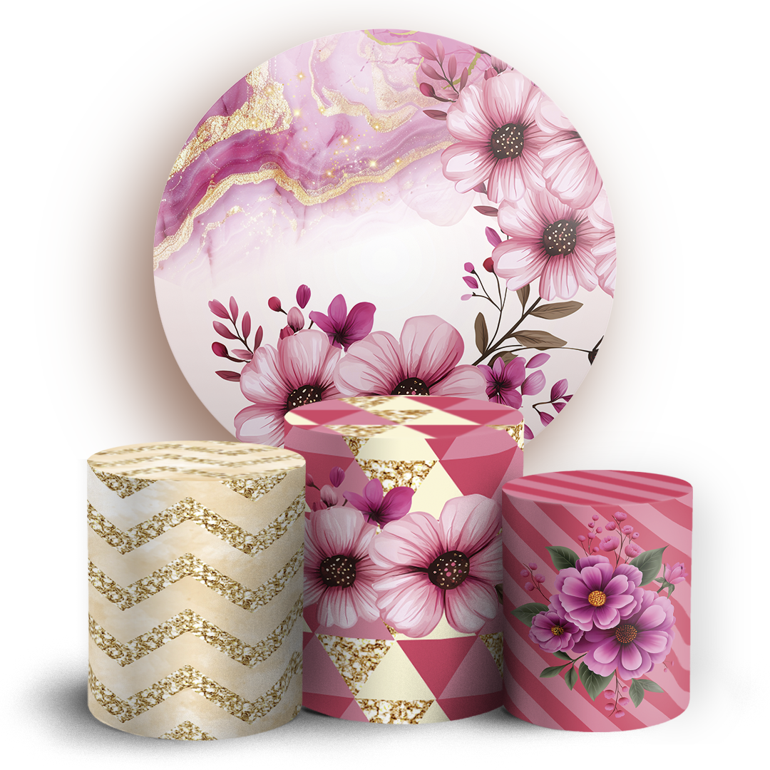 O kit Painel Redondo + Trio de capas para cilindros sublimados veste fácil, possuem acabamento overloque e elásticos nas bordas para facilitar a montagem da decoração