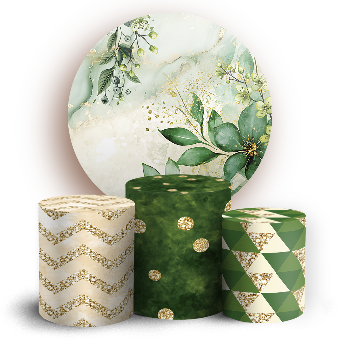 O kit Painel Redondo + Trio de capas para cilindros sublimados veste fácil, possuem acabamento overloque e elásticos nas bordas para facilitar a montagem da decoração