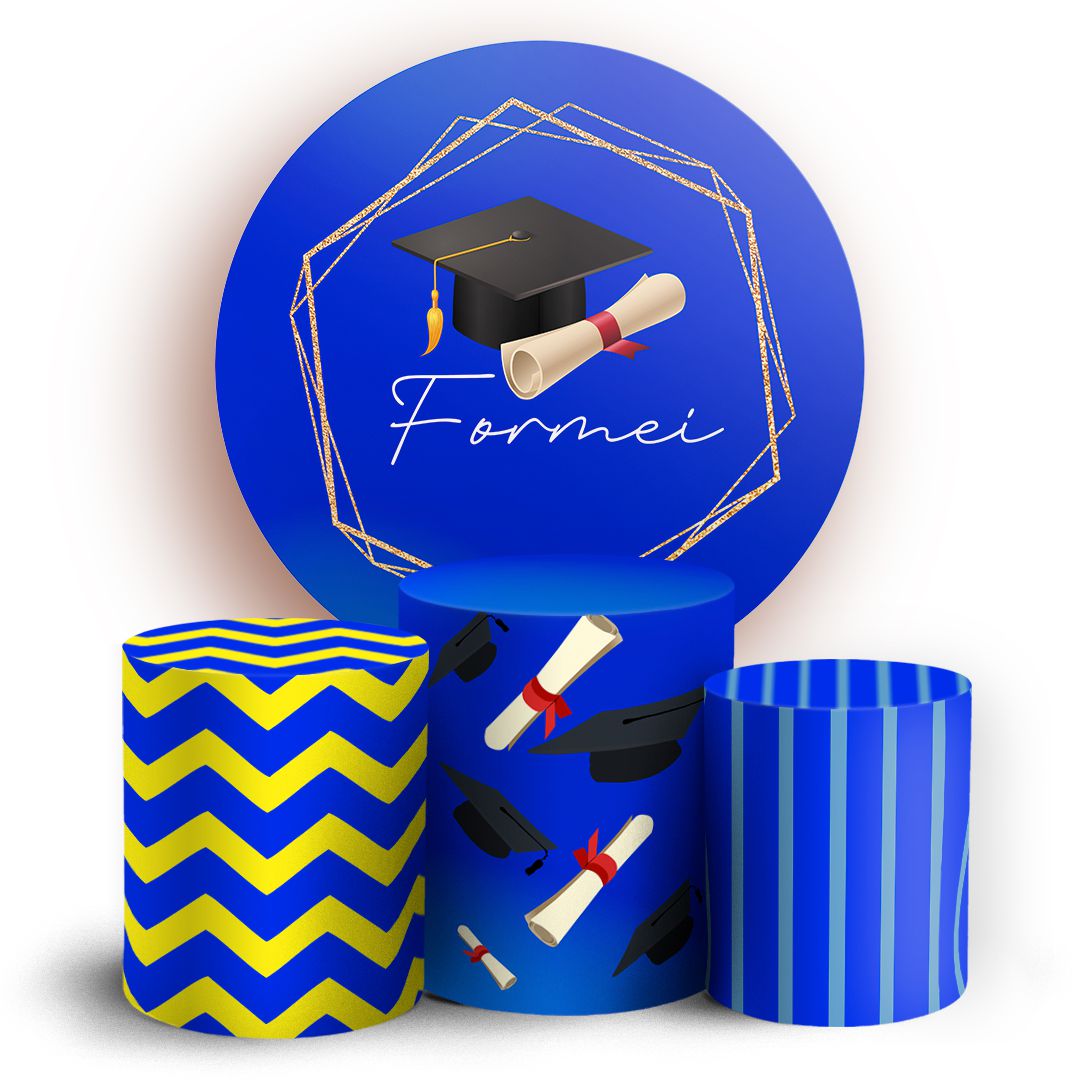 O kit Painel Redondo + Trio de capas para cilindros sublimados veste fácil, possuem acabamento overloque e elásticos nas bordas para facilitar a montagem da decoração