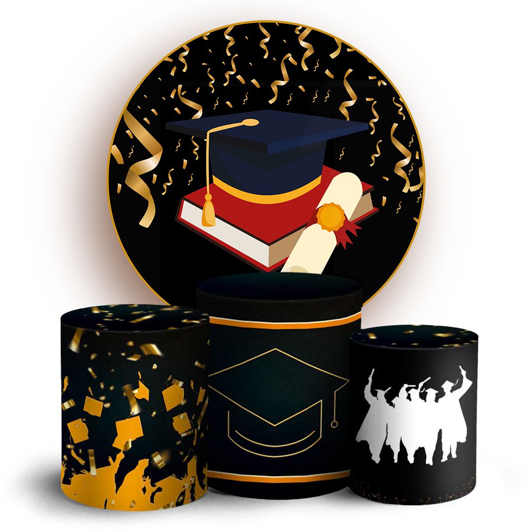 O kit Painel Redondo + Trio de capas para cilindros sublimados veste fácil, possuem acabamento overloque e elásticos nas bordas para facilitar a montagem da decoração