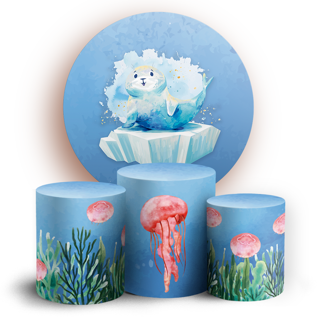 Capas Painel Redondo e Trio Cilindro Sublimado - Fundo Do Mar
