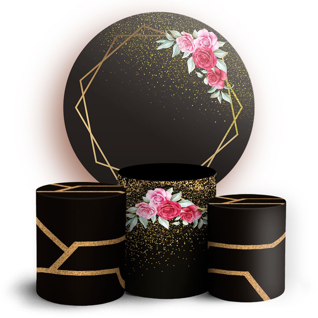 O kit Painel Redondo + Trio de capas para cilindros sublimados veste fácil, possuem acabamento overloque e elásticos nas bordas para facilitar a montagem da decoração