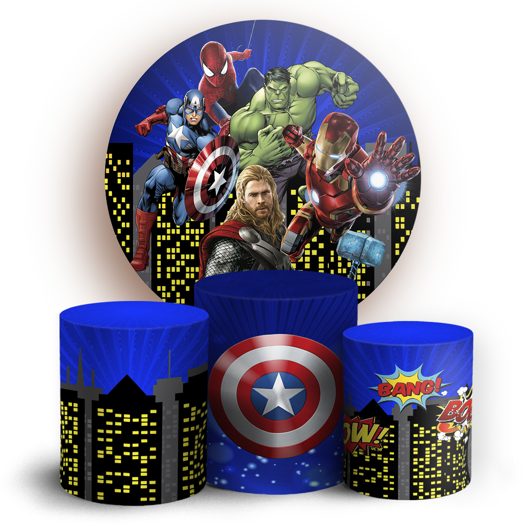 O kit Painel Redondo + Trio de capas para cilindros sublimados veste fácil, possuem acabamento overloque e elásticos nas bordas para facilitar a montagem da decoração