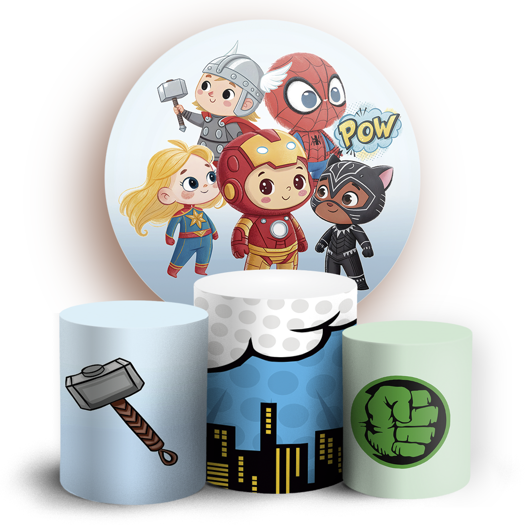 KIT Redondo e Trio - Herois Vingadores - Sublimado 3D