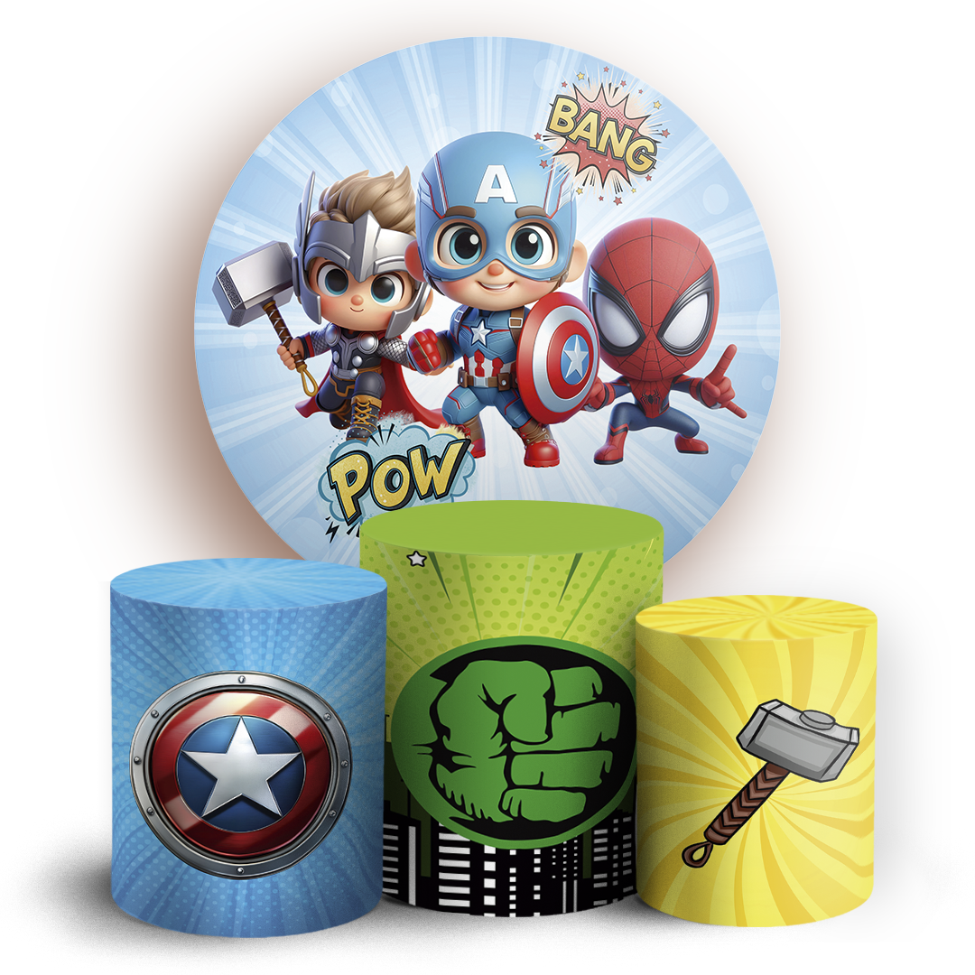 KIT Redondo e Trio - Herois Vingadores - Sublimado 3D