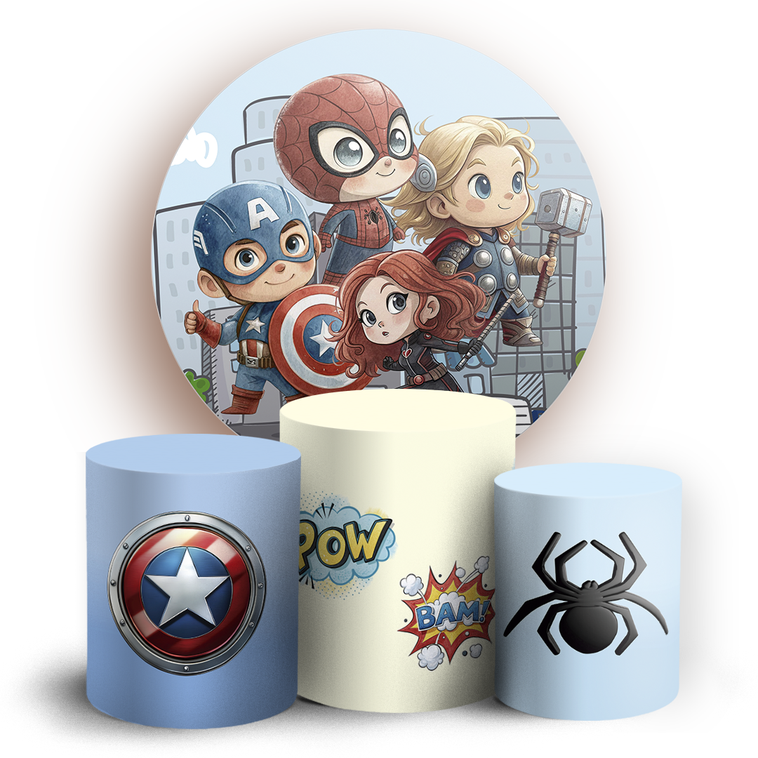 KIT Redondo e Trio - Herois Vingadores - Sublimado 3D