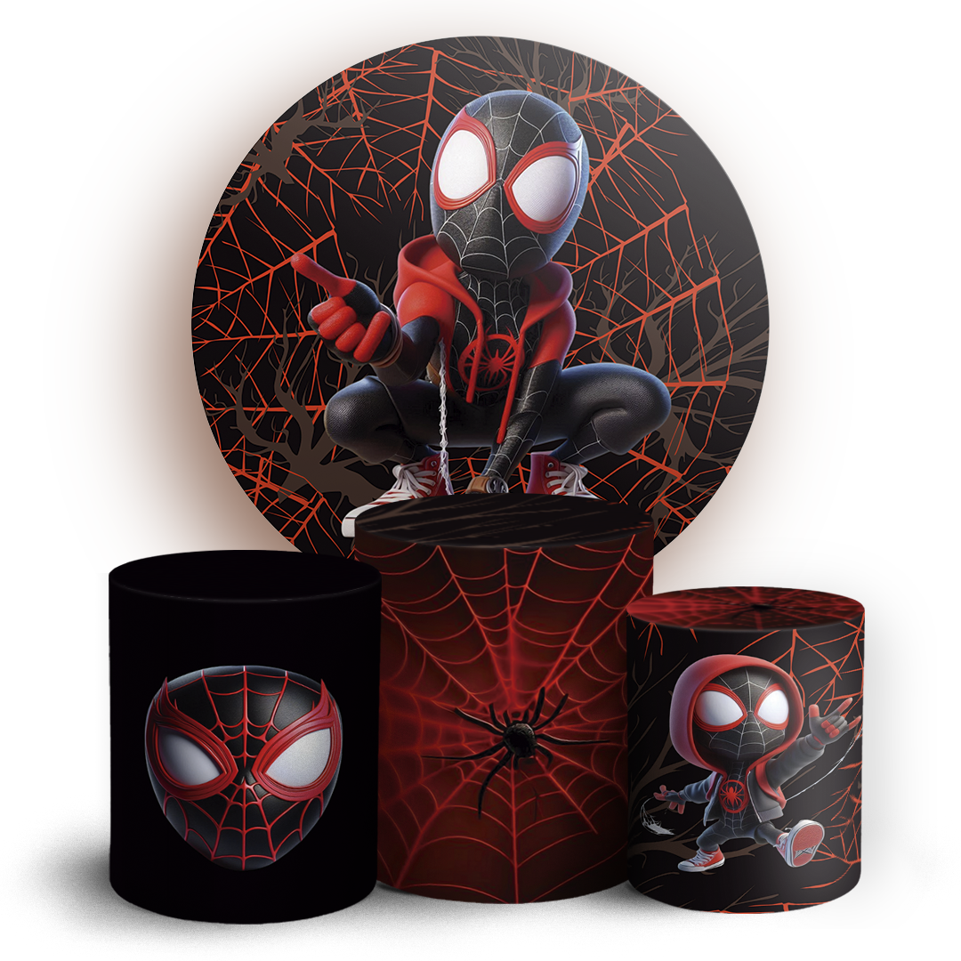 Capas Painel Redondo e Trio Cilindro Sublimado - Homem Aranha Miles Morales