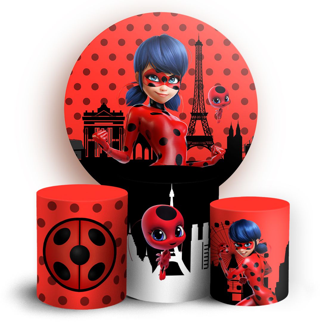 Capas Painel Redondo e Trio Cilindro Sublimado - Ladybug