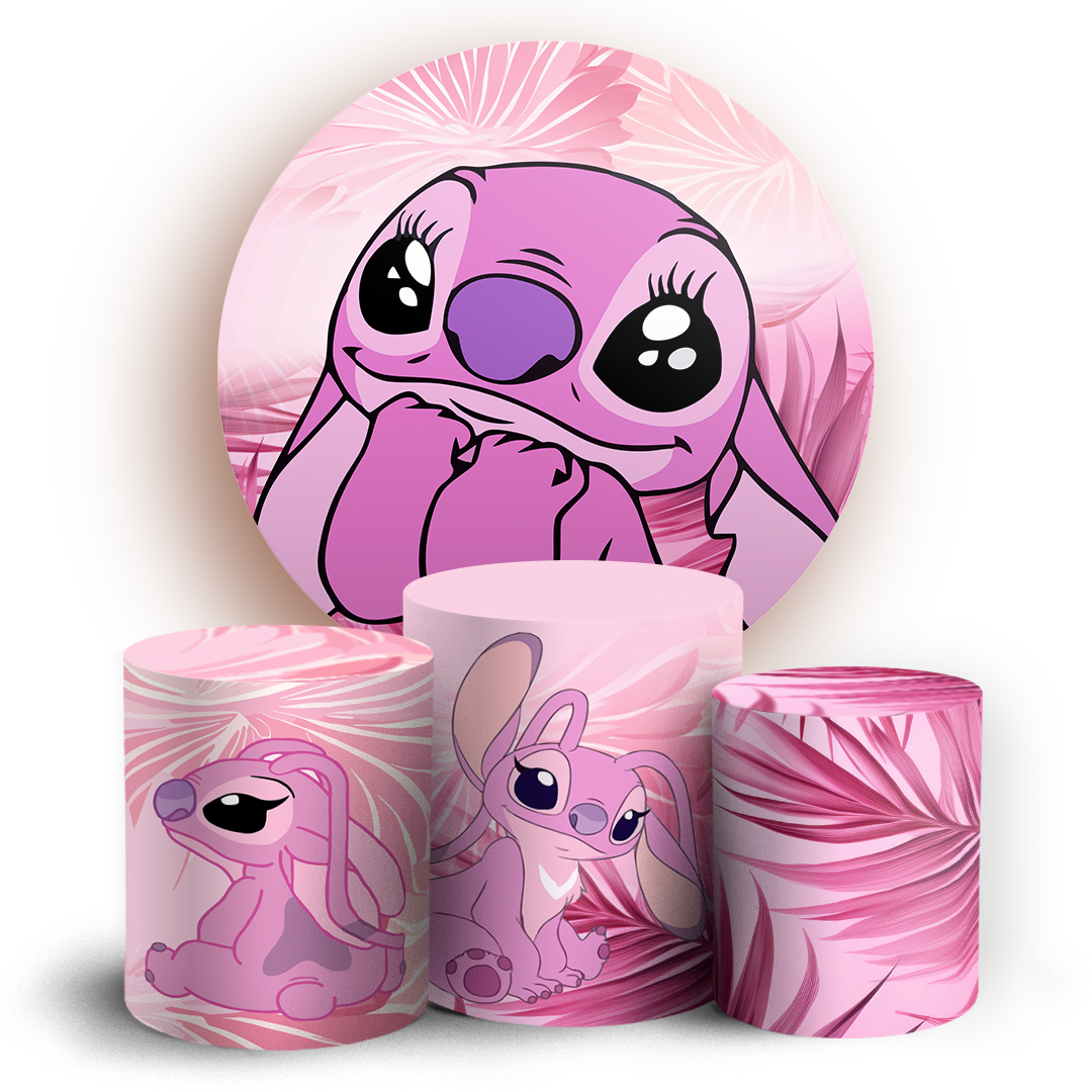 KIT Redondo e Trio - Lilo E Stitch Rosa - Sublimado 3D