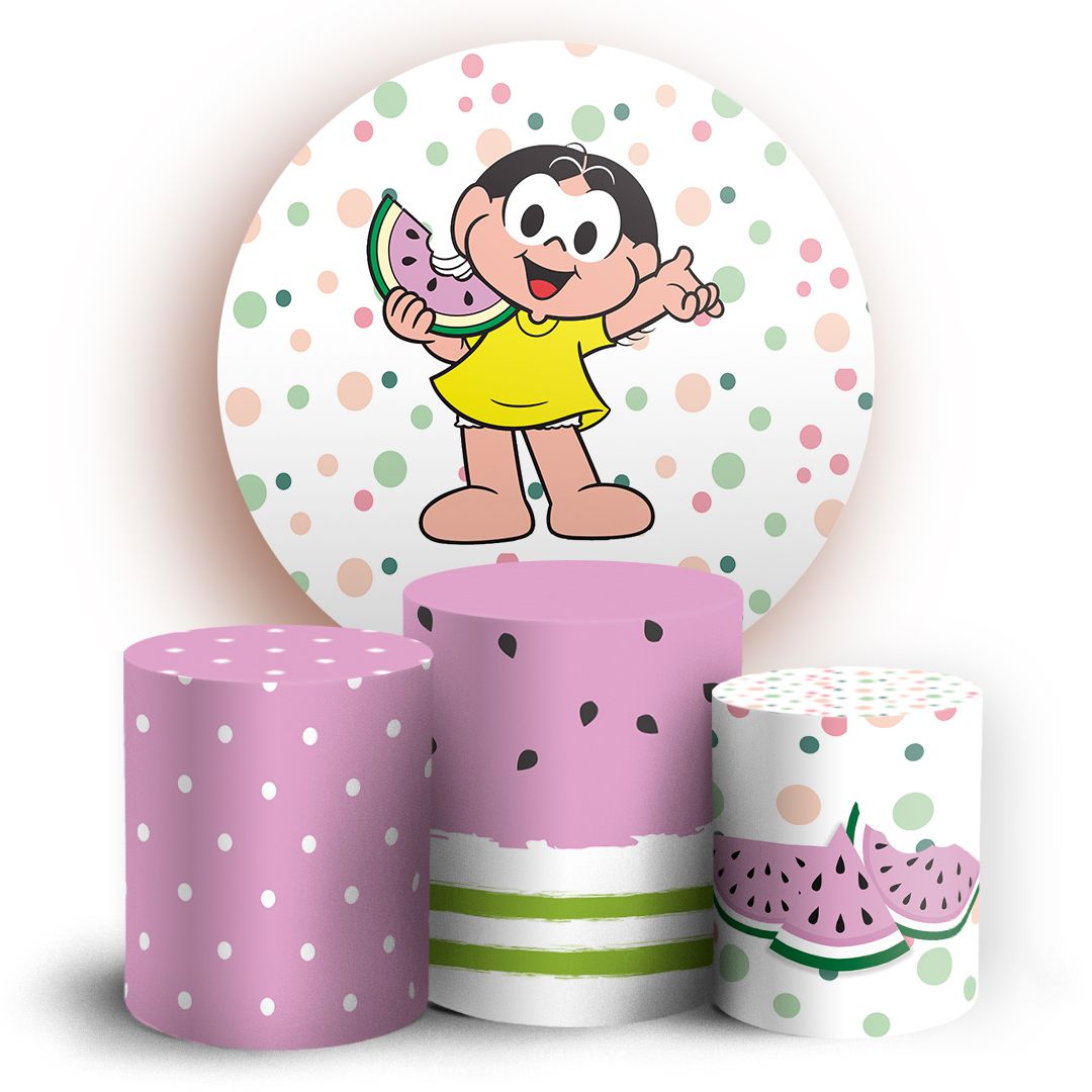 O kit Painel Redondo + Trio de capas para cilindros sublimados veste fácil, possuem acabamento overloque e elásticos nas bordas para facilitar a montagem da decoração
