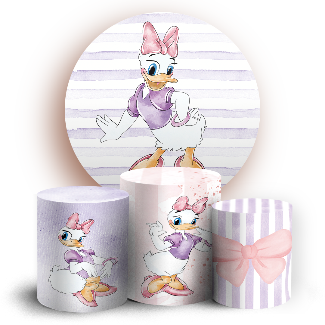 O kit Painel Redondo + Trio de capas para cilindros sublimados veste fácil, possuem acabamento overloque e elásticos nas bordas para facilitar a montagem da decoração