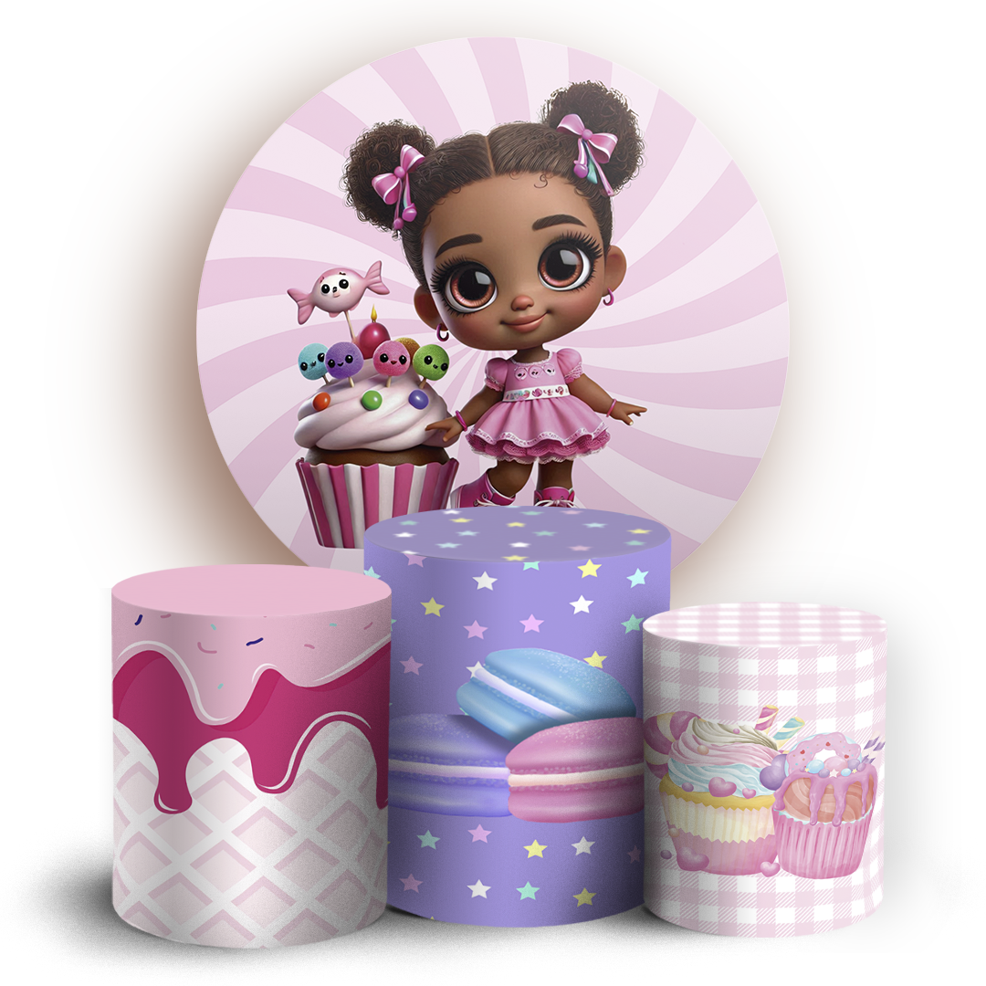 KIT Redondo e Trio - Menina Confeitaria Doces - Sublimado 3D