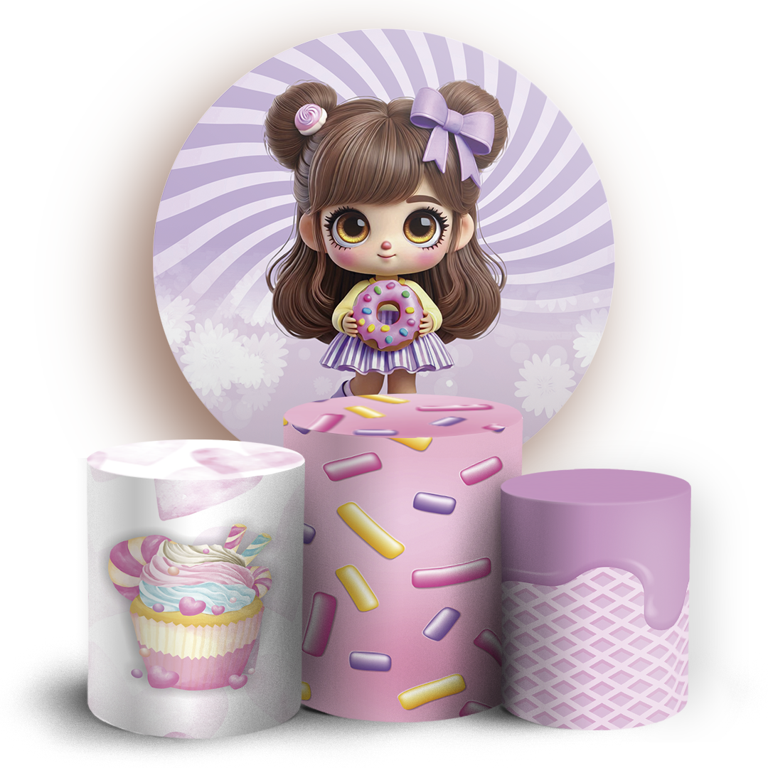 KIT Redondo e Trio - Menina Confeitaria Doces - Sublimado 3D
