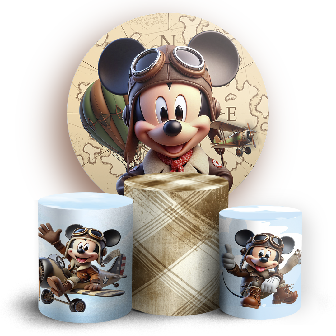 Capas Painel Redondo e Trio Cilindro Sublimado - Mickey Aviador