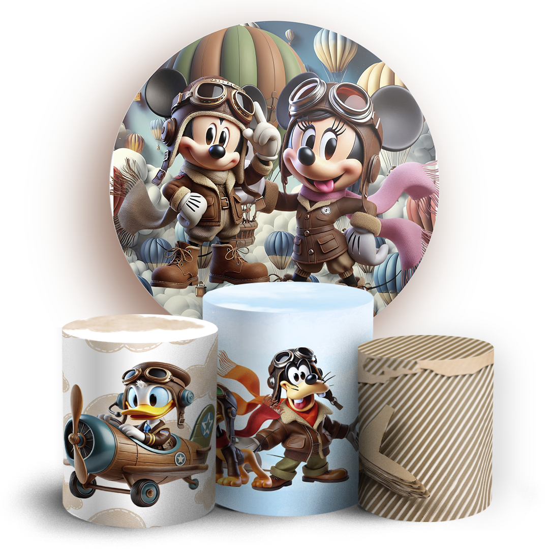 Capas Painel Redondo e Trio Cilindro Sublimado - Mickey Aviador