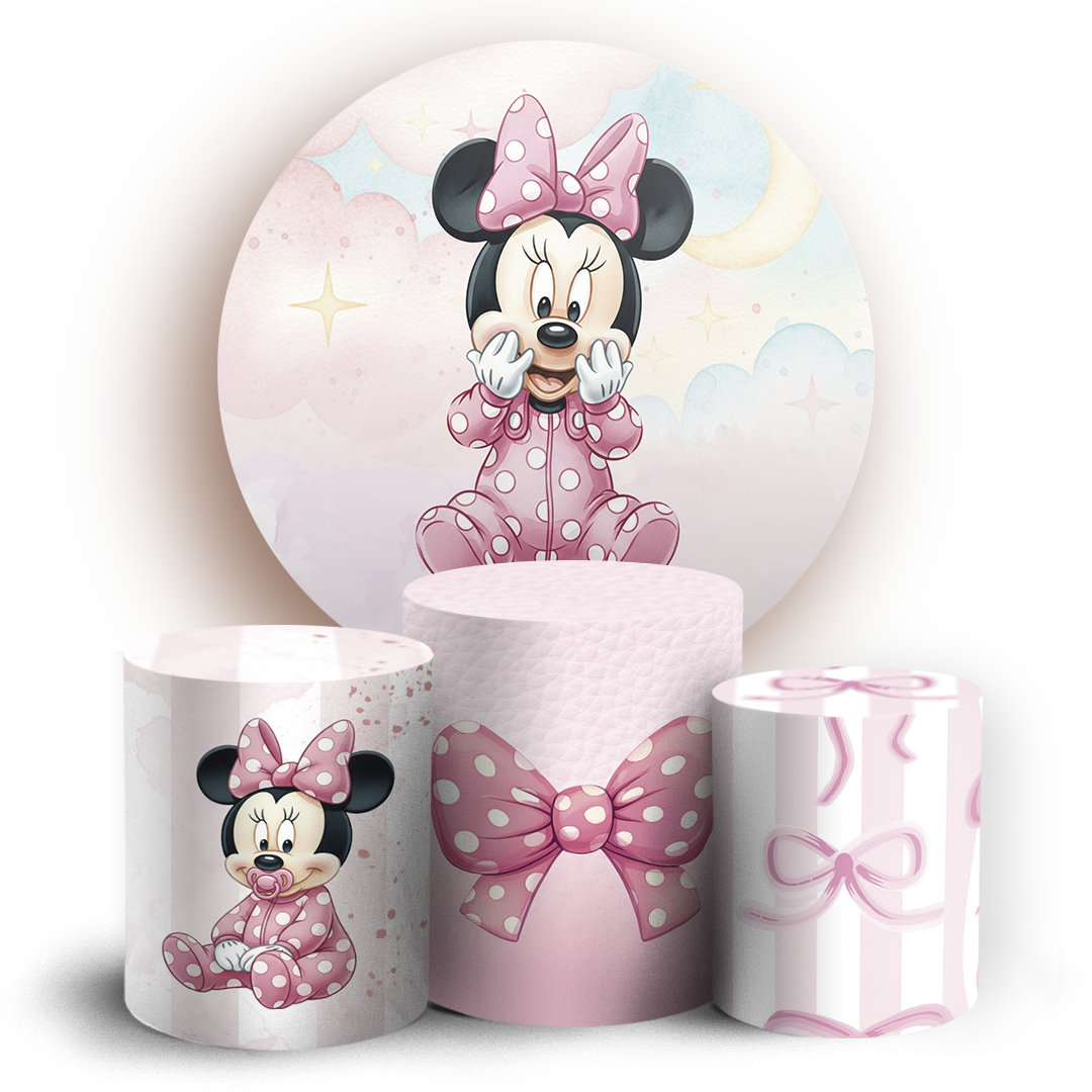 KIT Redondo e Trio - Minnie Baby Rosa - Sublimado 3D