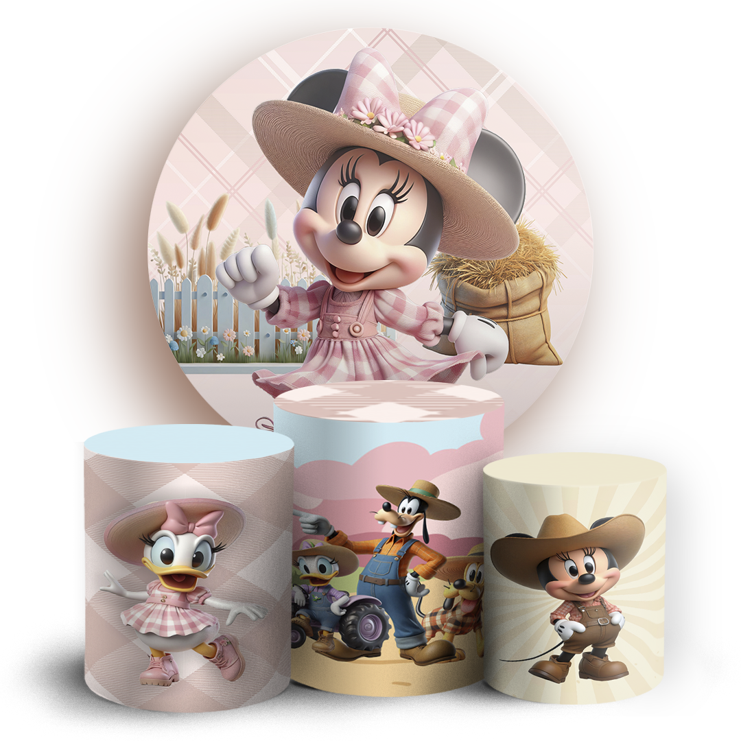 KIT Redondo e Trio - Minnie Fazendinha - Sublimado 3D