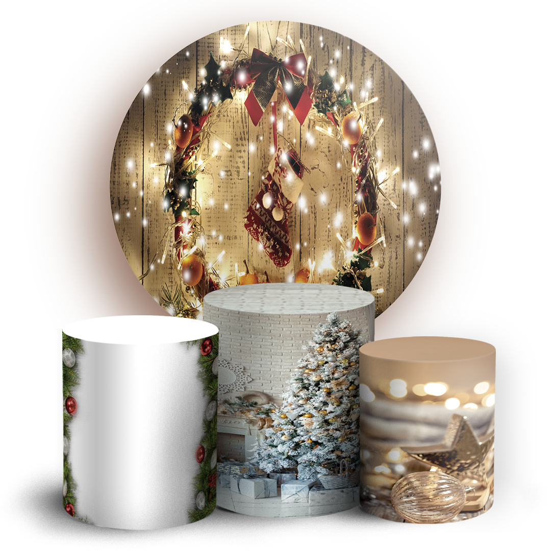 O kit Painel Redondo + Trio de capas para cilindros sublimados veste fácil, possuem acabamento overloque e elásticos nas bordas para facilitar a montagem da decoração