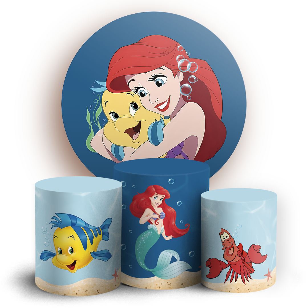 KIT Redondo e Trio - Princesa Ariel Pequena Sereia - Sublimado 3D