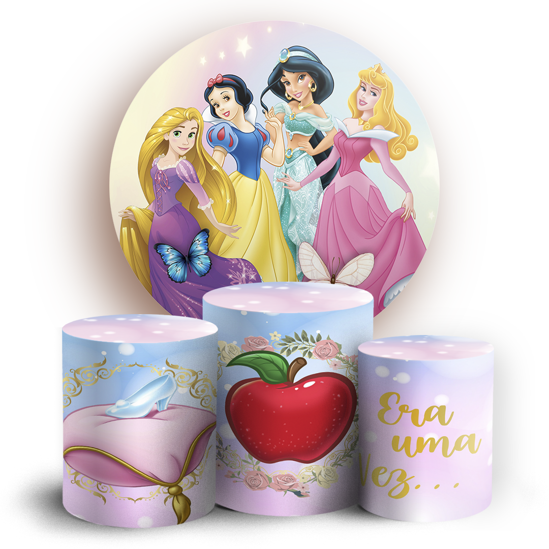 Capas Painel Redondo e Trio Cilindro Sublimado - Princesas