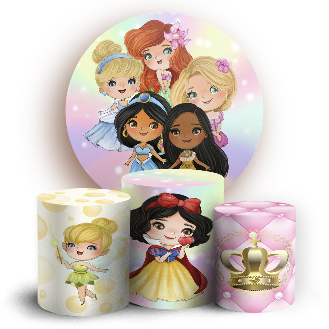 Capas Painel Redondo e Trio Cilindro Sublimado - Princesas