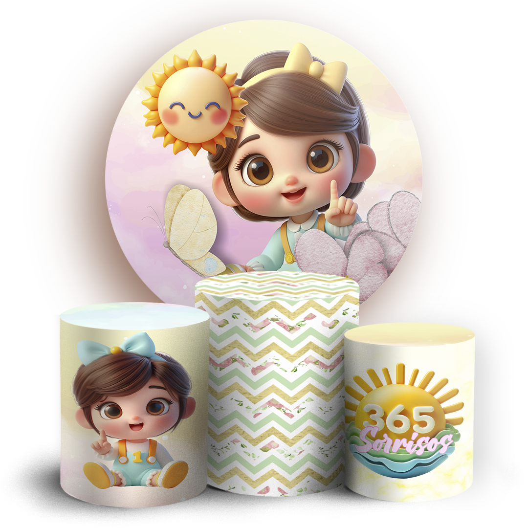 O kit Painel Redondo + Trio de capas para cilindros sublimados veste fácil, possuem acabamento overloque e elásticos nas bordas para facilitar a montagem da decoração